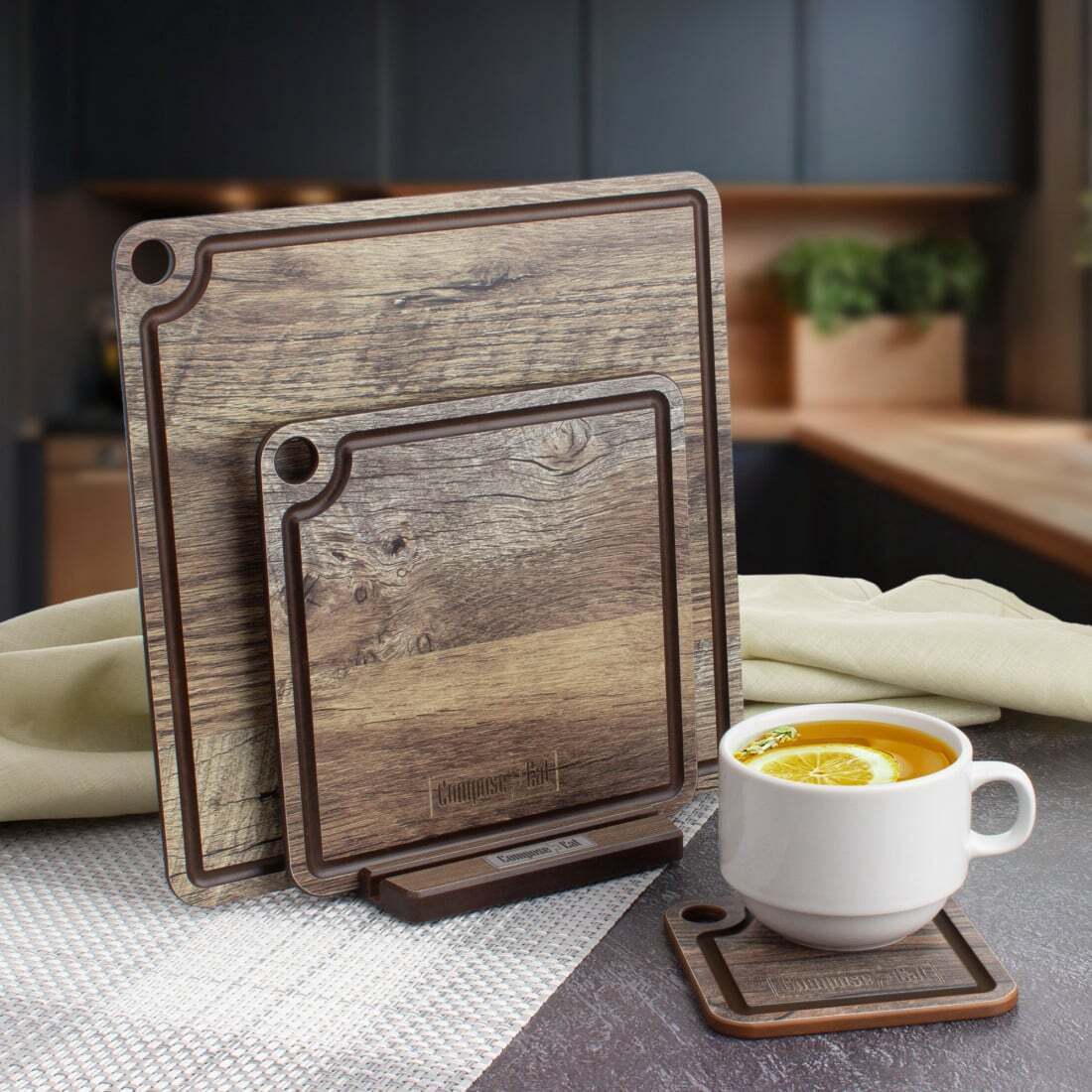 Разделочная доска с желобом ComposeEat ProFashion, 32×24 см в цвете дуб морёный — стильный и практичный аксессуар для кухни и уличной зоны барбекю. Натуральная фактура морёного дуба в сочетании с современным композитом делает доску одновременно эффектной на вид и устойчивой к ежедневной нагрузке.