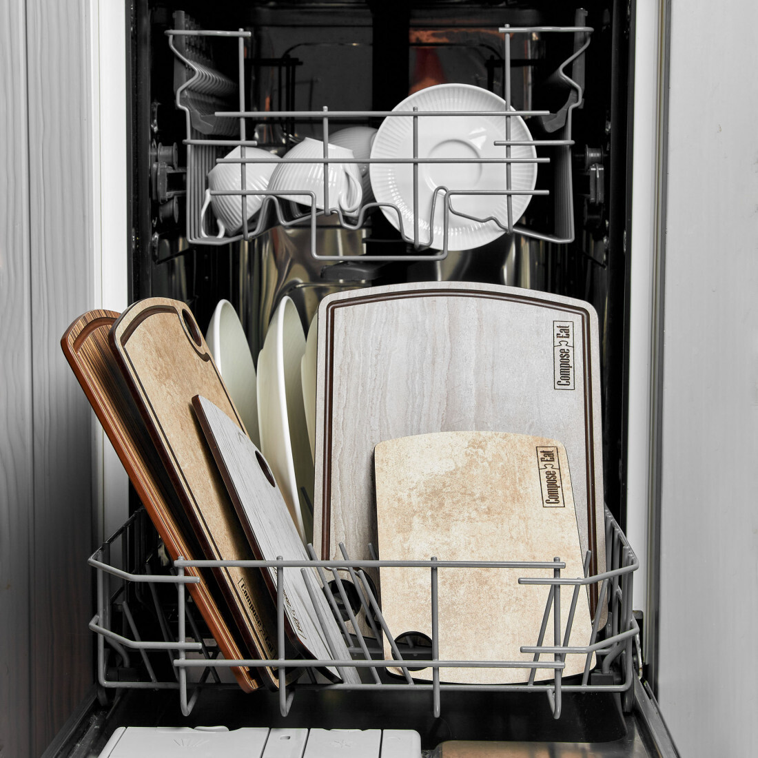 Доски ComposeEat® выпускаются в России из композитного монолитного материала на основе многослойной крафтовой бумаги. Прочный, легкий, термостойкий, он не подвержен деформации, а также обладает защитным гипоаллергенным покрытием с антибактериальными свойствами.