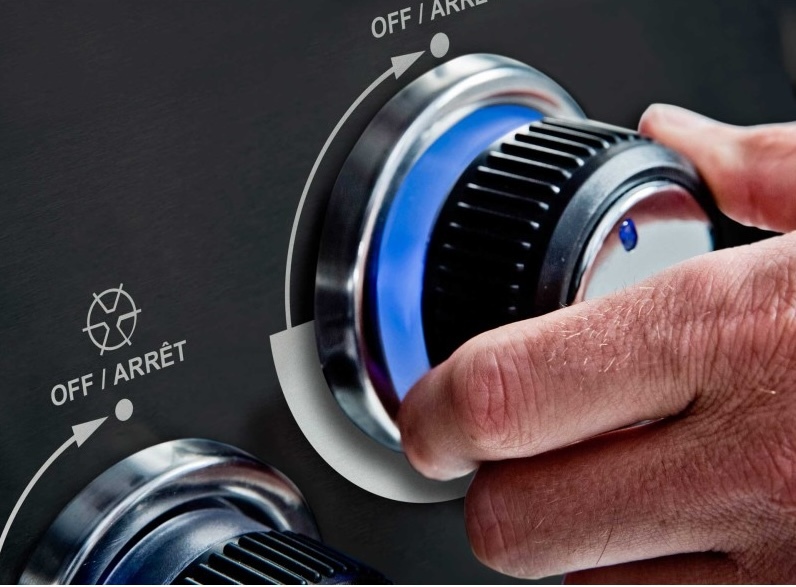 5. Точный контроль температуры обеспечивается благодаря специальным многоступенчатым клапанам, расположенным под ручками управления Sensi-Touch™. Клапаны Linear-Flow™ имеют шкалу регулировки с поворотом на 180 градусов, которая позволяет не только точно устанавливать температуру, но и регулировать зоны нагрева внутри духовки гриля.