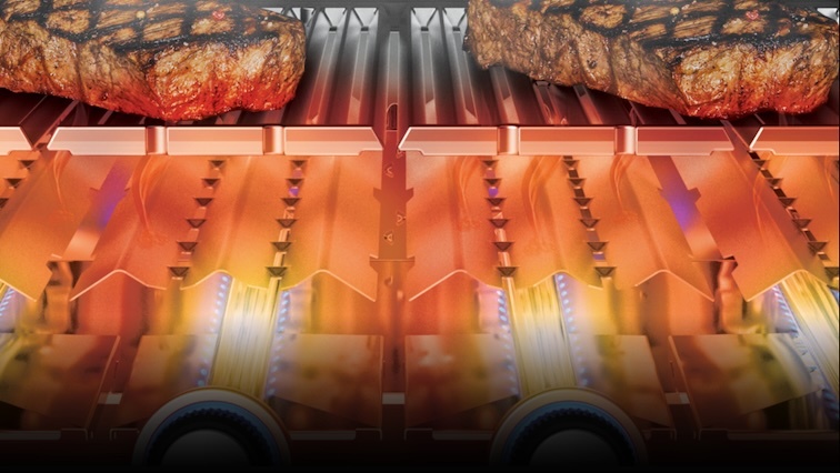 - Запатентованные горелки Dual-Tube™ из нержавеющей стали с 10-летней гарантией равномерно распределяют жар по всей решётке.