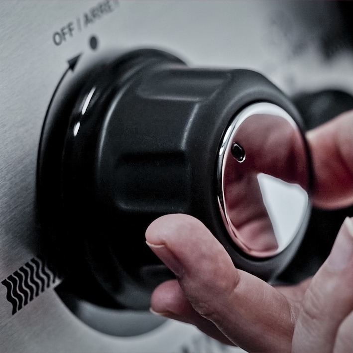 - Клапаны Linear-Flow™ с ручками управления горелками Sensi-Touch™, которые проворачиваются на 180°, что обеспечивает плавную регулировку температуры.