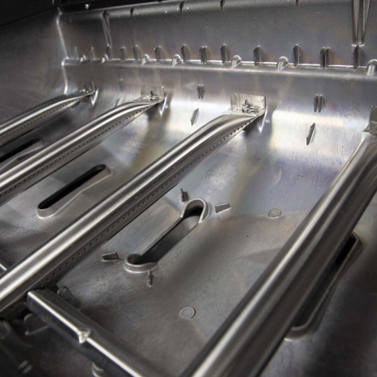 Мощность основных четырёх горелок у Broil King Baron 440, которые находятся под решёткой - 11.4 кВт. Горелки сделаны по технологии "трубка в трубке", которая обеспечивает равномерное распределение жара в духовке. Газ сначала поступает в трубку меньшего диаметра, затем из неё через ряд специальных отверстий - в трубку большего диаметра (в неё вставлена меньшая трубка). Таким образом пламя равномерно выходит в духовку из двух рядов отверстий, который сделаны по всей длине у большой трубки.