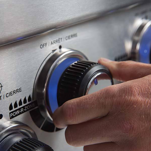 5. Точный контроль температуры обеспечивается благодаря специальным многоступенчатым клапанам, расположенным под ручками управления Sensi-Touch™. Клапаны Linear-Flow™ имеют шкалу регулировки с поворотом на 180 градусов, которая позволяет не только точно устанавливать температуру, но и регулировать зоны нагрева внутри духовки гриля.