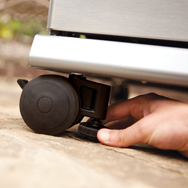 На колёсиках гриля есть регуляторы, которые позволят выровнять его на полу, плитке или брусчатке, если есть неровности.