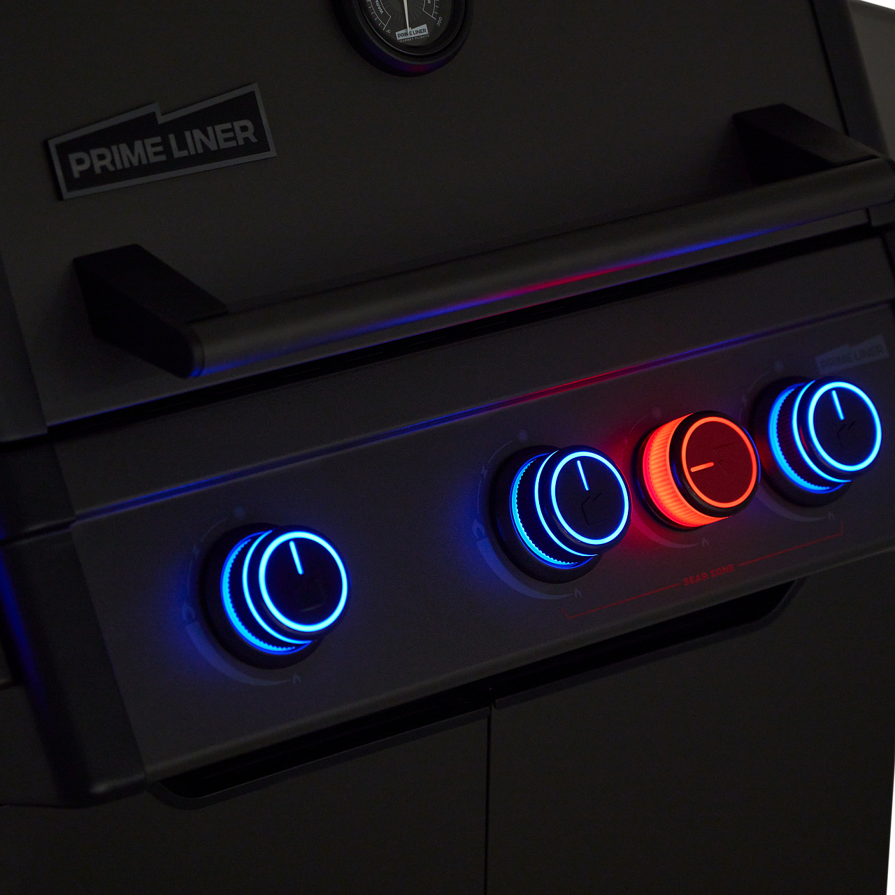 Горелки с системой независимого пьезоподжига PRIME FIRE™ с перекрестным зажиганием управляются ручками, на которых установлена подсветка NIGHT PILOT™. Она преображает гриль вечером и делает приготовление более удобным: вы понимаете, какие горелки у вас работают. Если горелка выключена, она подсвечивается синим цветом, а когда она включена - красным.