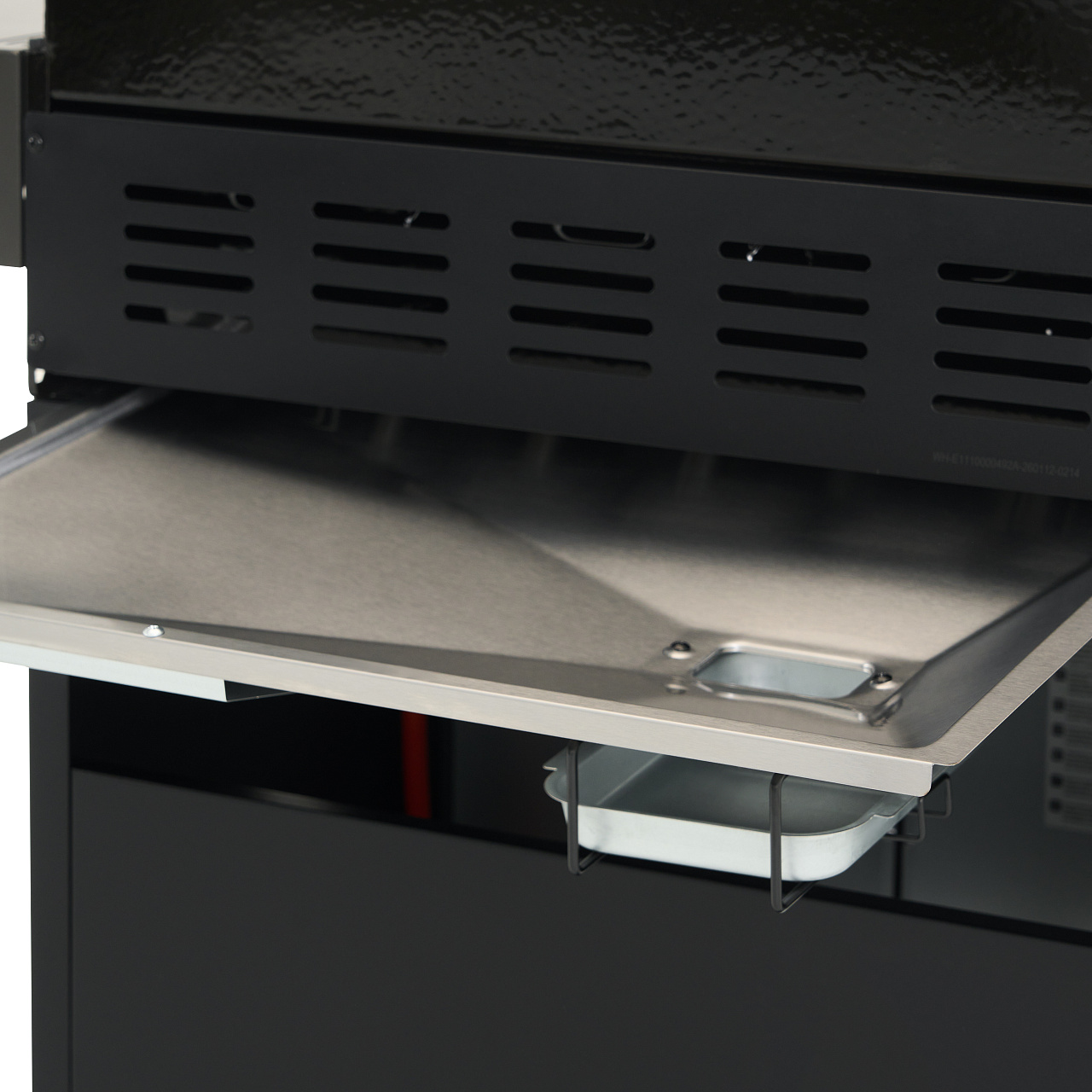 Широкие боковые пристолья дают достаточно места для размещения тарелок с ингредиентами или для сервировки готовых блюд. Удобный выдвигающийся лоток жиросборника позволяет легко удалить скопившийся сок или жир.