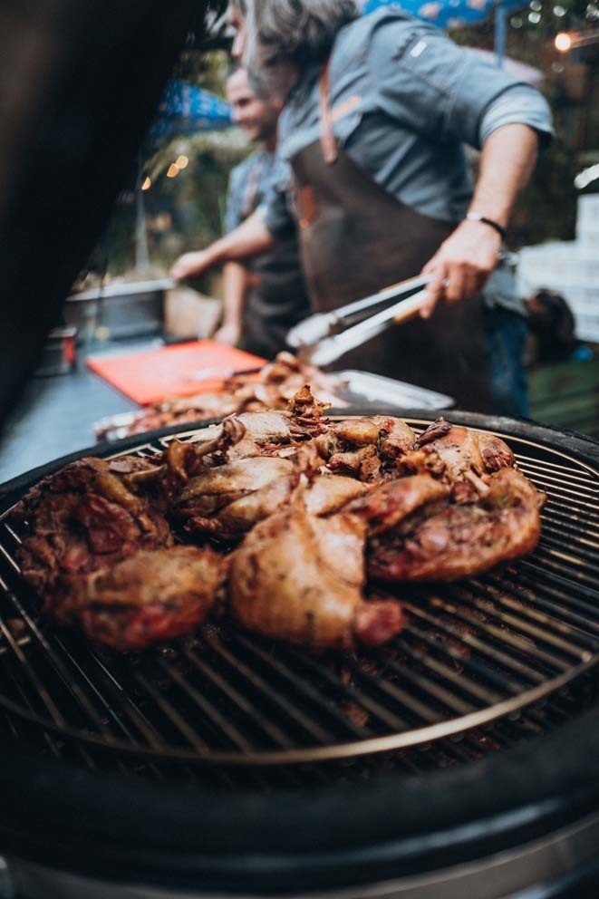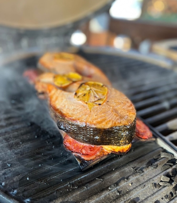 Делайте стейки из мраморной и фермерской говядины, каре ягнёнка, которые особенно хорошо получаются на чугунной решётке; овощи, морепродукты на чугунной планче; рыбу на кедровых дощечках на прямом жаре от углей.