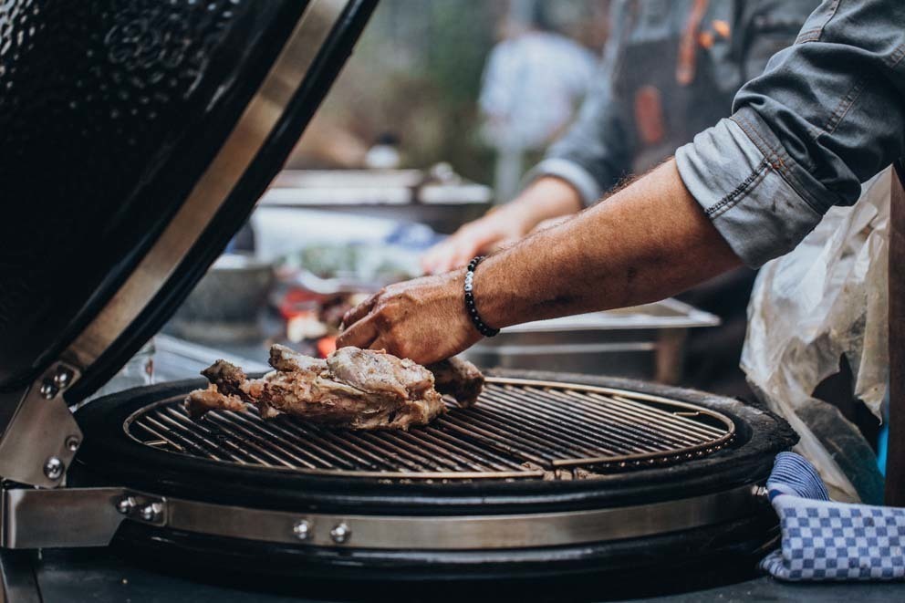 - приготовления с закрытым куполом, что обеспечивает равномерное воздействие температуры на продукт со всех сторон (не только снизу), и практически исключает попадание внутрь гриля кислорода, который сушит ингредиенты и заставляет угли быстро прогорать (как происходит на мангале);