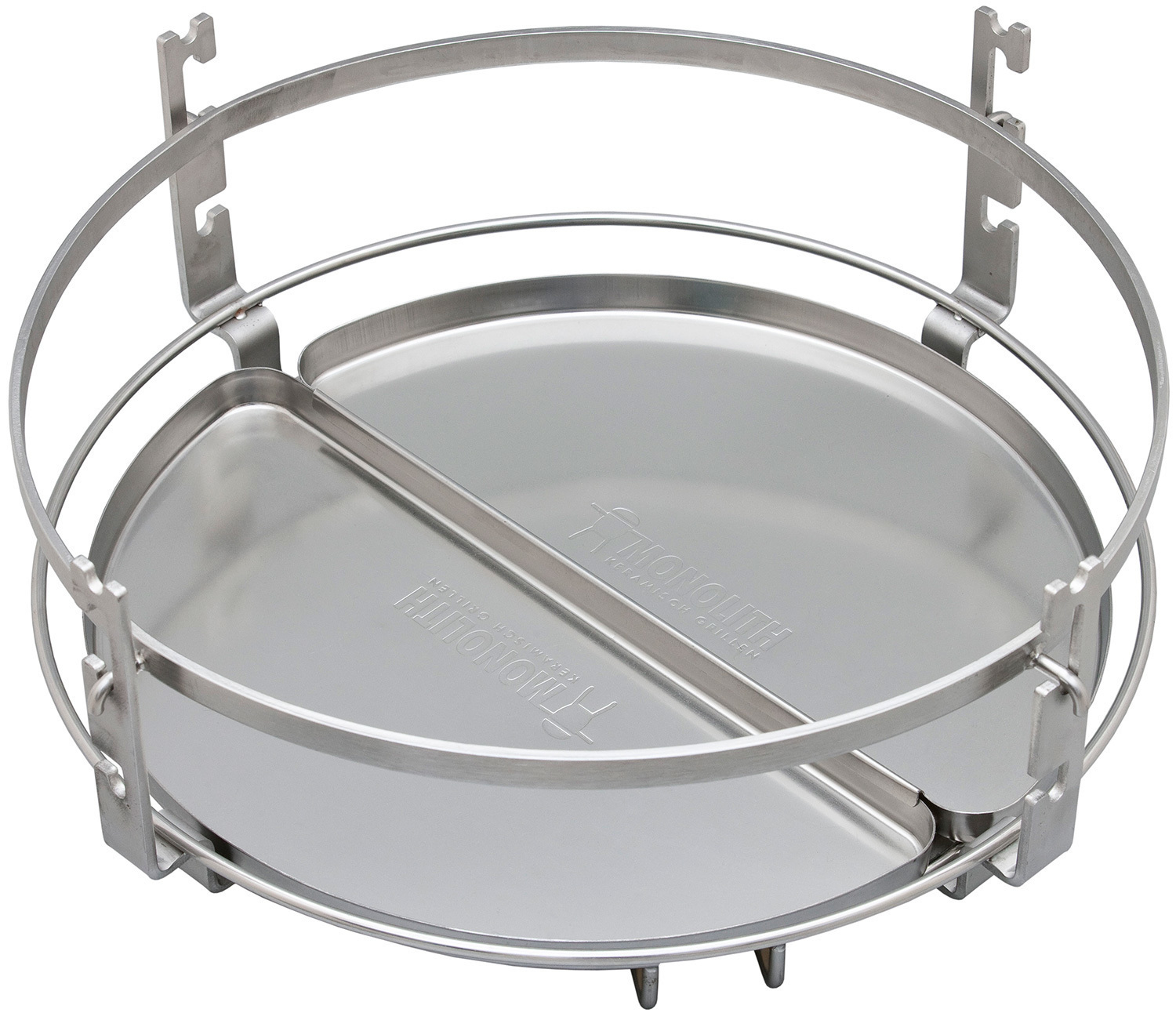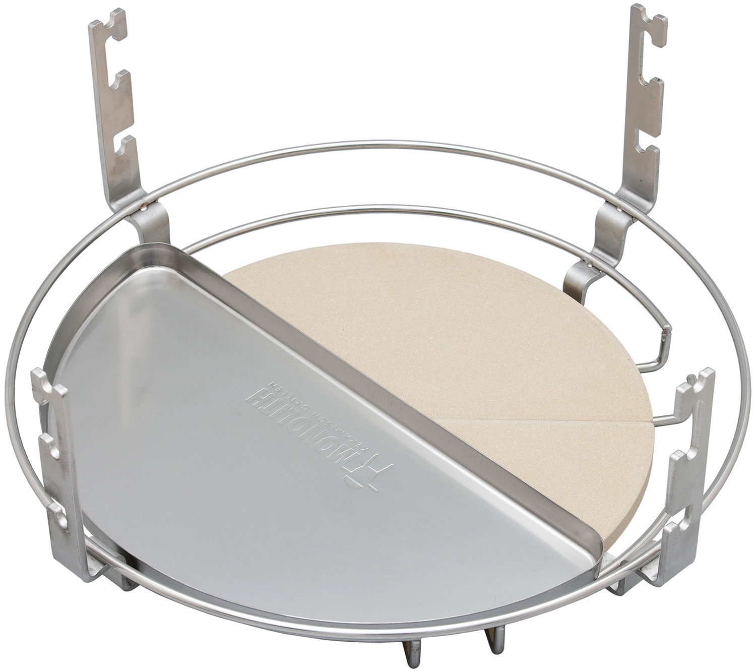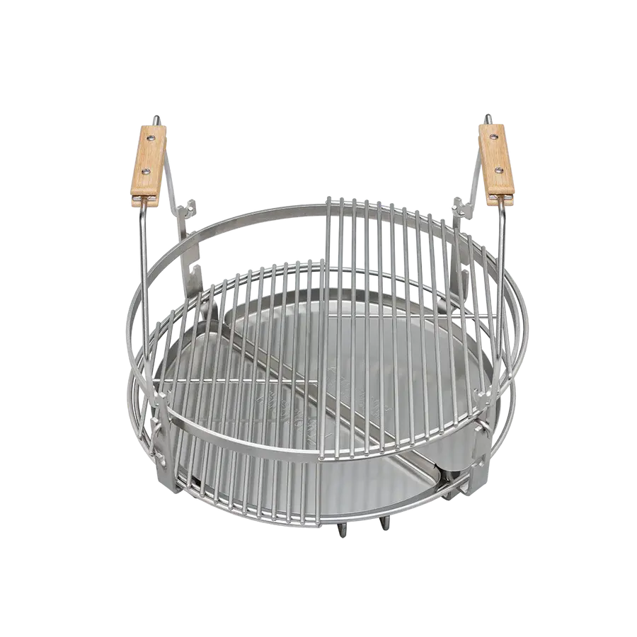 В комплектацию Monolith Two.66 входит отсекатель жара - самый важный аксессуар для любого керамического гриля, который позволяет запекать, томить, коптить часами, делать выпечку. Поддоны из нержавеющей стали защищают жароотсекатель от капающего жира и сока.