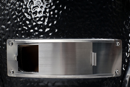 Одна из главных особенностей керамического гриля Monolith - богатая базовая комплектация. В неё входят полезные аксессуары, которые позволяют готовить различными техниками и максимально раскрыть кулинарные возможности гриля. Так, например, у гриля есть отверстие на фронтальной части основания, через которое можно добавлять щепу во время долгого копчения, не открывая купол и тем самым не нарушая температуру приготовления. В комплект входит специальное приспособление для подачи щепы.