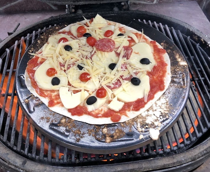 А если хотите приготовить курицу на керамической подставке с пивом, а, лучше - вином или сделать жаркое в большой чугунной кастрюле, то решётку можно перевернуть. Она окажется притопленной и пространство под куполом увеличится.
