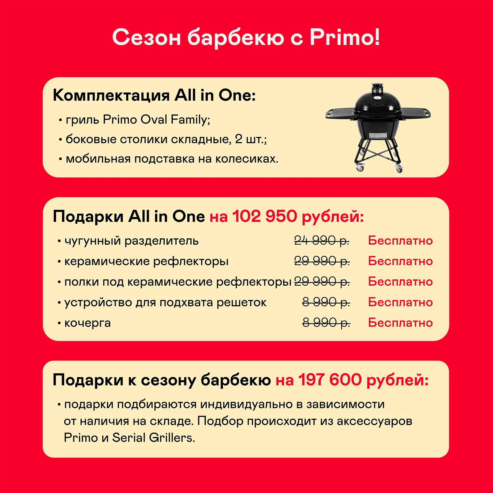Комплектация и особенности гриля Primo Oval Family All-In-One: