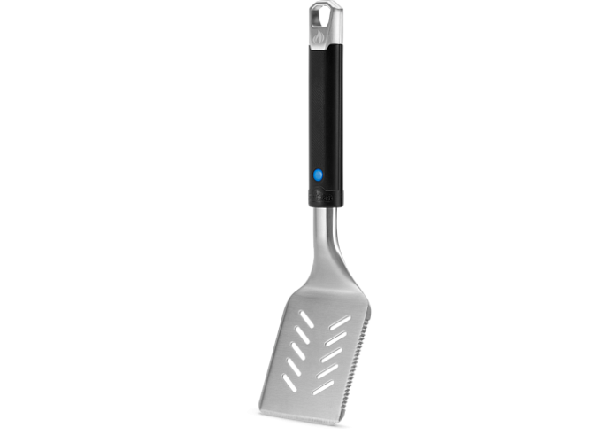 Лопатка изготовлена из нержавеющей стали и оснащена эргономичной нескользящей ручкой со встроенной открывалкой для бутылок, чтобы вы могли открыть напиток, не отвлекаясь от приготовления. Заострённые края с трёх сторон обеспечивают удобную работу с продуктами, а зубчатая сторона позволяет быстро разделять мясо и другие ингредиенты прямо во время готовки.