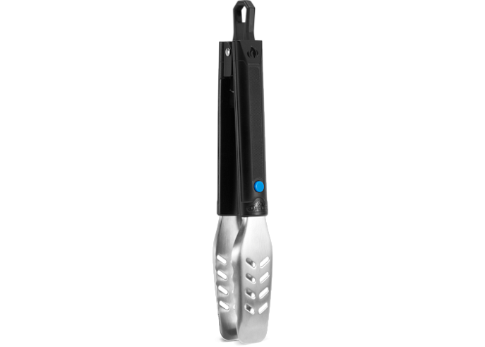 Щипцы выполнены из нержавеющей стали и имеют термостойкие полимерные ручки с противоскользящим покрытием. Они фиксируются в сложенном положении с помощью специального кольца, которое также позволяет устанавливать щипцы вертикально на гриле. Благодаря удобной форме щипцами легко подхватить как небольшую креветку, так и перевернуть крупный стейк.
