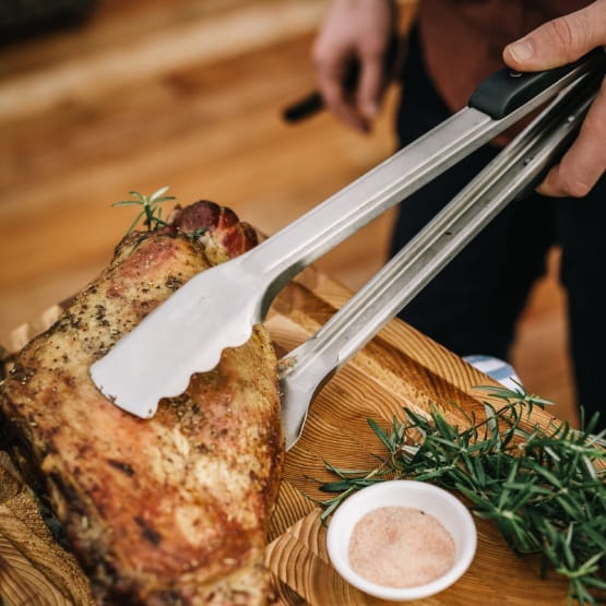 У щипцов большой угол раскрытия, который позволяет захватить даже курицу целиком.