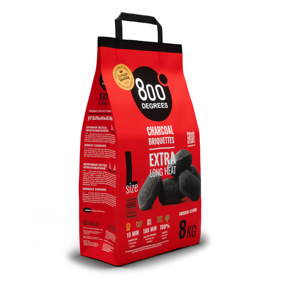 Рекомендуем применять угольные брикеты 800 Degrees Extra Long Heat для приготовления блюд, требующих сильного, высокотемпературного жара, в пределах 120-360°C.