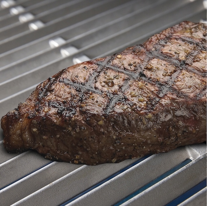 У гриля мощная стальная решётка. Такая толщина сравнима по теплоотдаче с чугунным прутом, поэтому стейки будут прожариваться на ней равномерно. Да и для любых других блюд такая массивная решётка - это несомненный плюс для гриля. На ней удобнее готовить, её удобнее чистить и она более долговечна. Эта деталь в совокупности с другими важными конструктивными элементами влияет на вкус и правильное приготовление блюд.