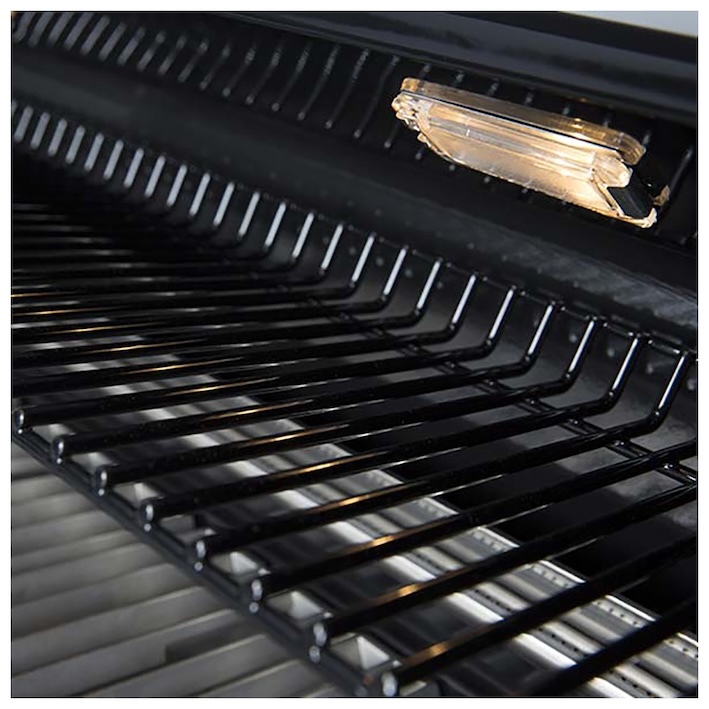 - Под решётками установлены пластины-испарители Flav-R-Wave из нержавеющей стали. Они предназначены для равномерного распределения температуры в духовке гриля; обеспечивают испарение соков дополнительную ароматизацию ингредиентов на решётке; минимизируют вспышки пламени и защищают горелки от загрязнения.