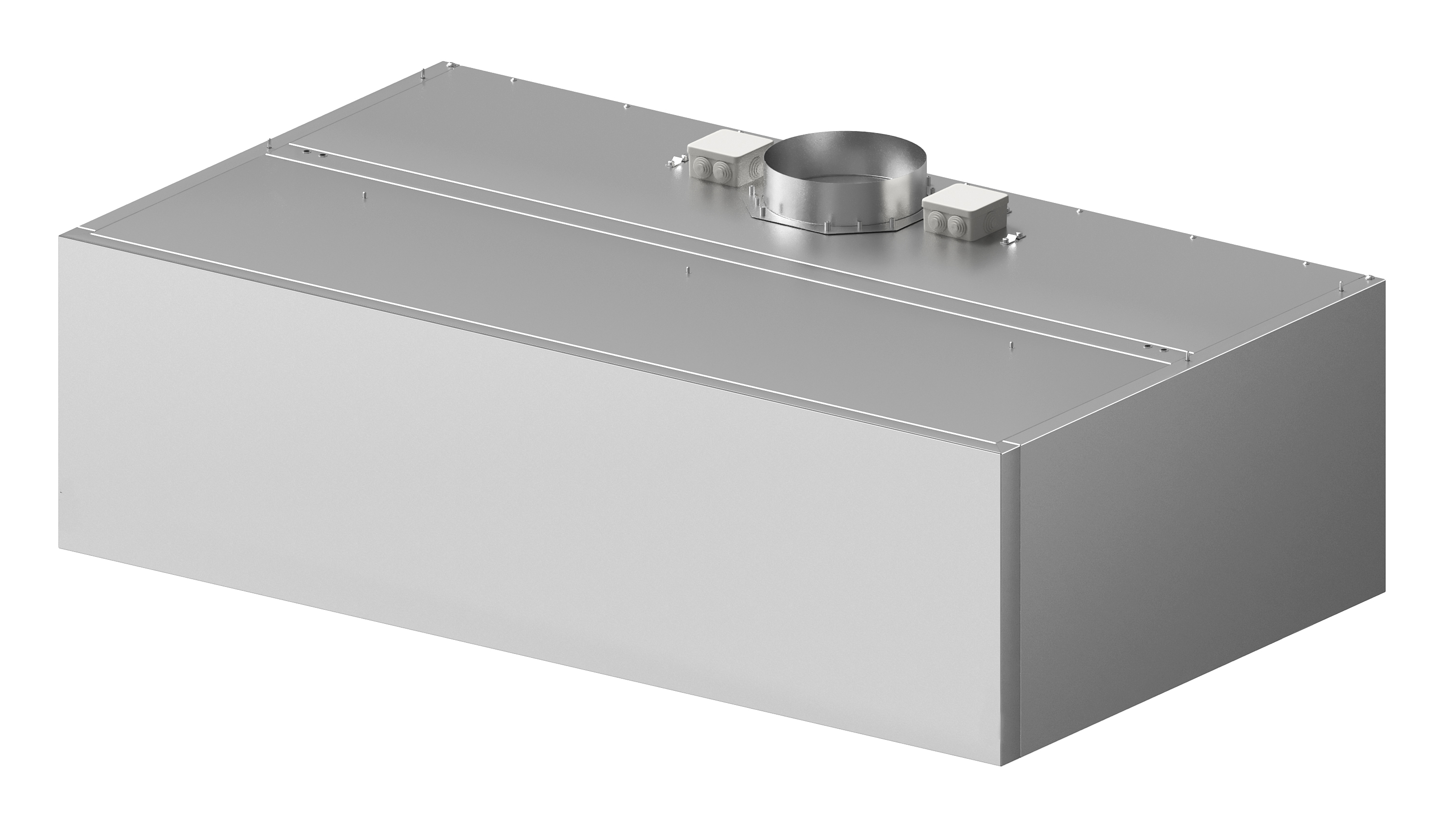 Вы можете заказать эту вытяжку длиной от 70 до 220 см, а также глубиной 80 или 100 см. Стоимость указана за вытяжку размером 120x80x50 см. В зависимости от длины вытяжка может комплектоваться одним или двумя выходными отверстиями для патрубков.